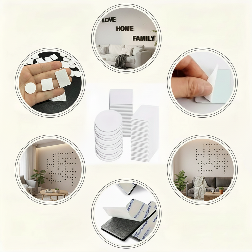 No drilling required! Each letter comes ready to mount with included double-sided adhesive tape. Simply peel, position, and press. The tape holds securely on most smooth surfaces including painted walls, tiles, and glass.